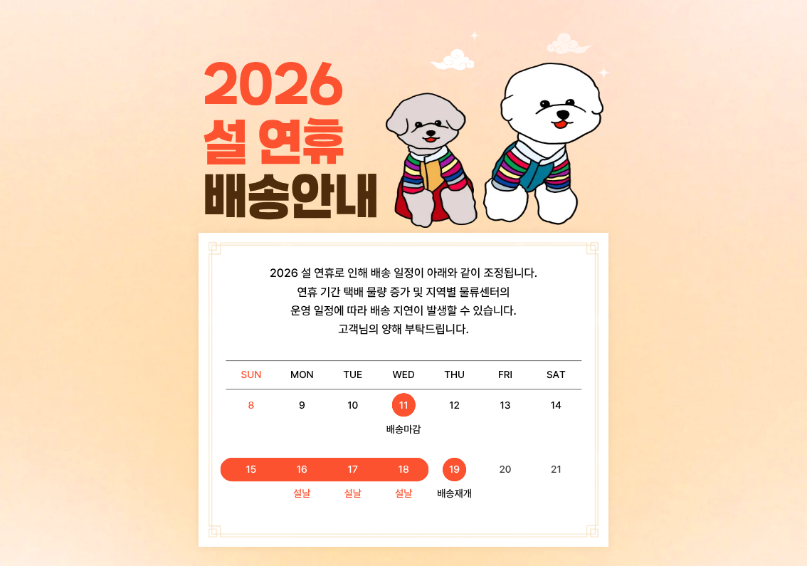 2022년 설 연휴 배송 안내